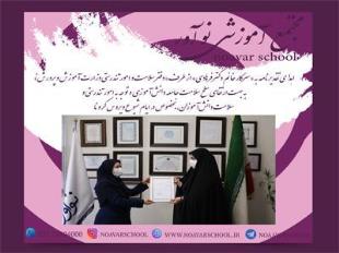 تقدیرنامهای به «سرکار خانم دکتر فرهادی» موسس و مدیرعامل مجتمع آموزشی نوآور، از طرف «دفتر سلامت و تندرستی معاونت تربیت بدنی و سلامت وزارت آموزش و پرورش» به جهت ارتقای سطح سلامت جامعه دانشآموزی و توجه به امور تندرستی و سلامت دانشآموزان، بخصوص در ایام شیوع ویروس کرونا اهدا شد.